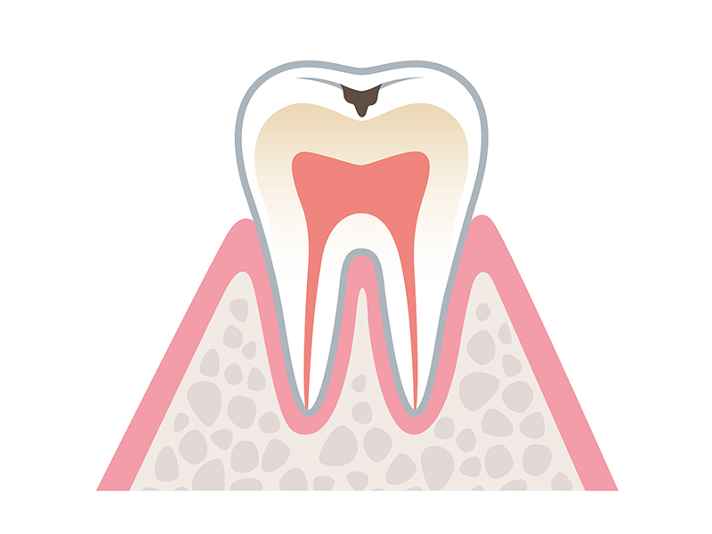 むし歯が進行し、エナメル質が溶け始めると、歯の表面に小さな穴が開きます。この段階では、むし歯を除去し、適切な詰め物で修復する必要があります。症例によっては、詰め物を行わず、定期的な観察を行うこともありますが、基本的には早期の処置が推奨されます。